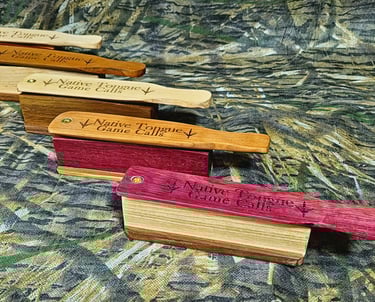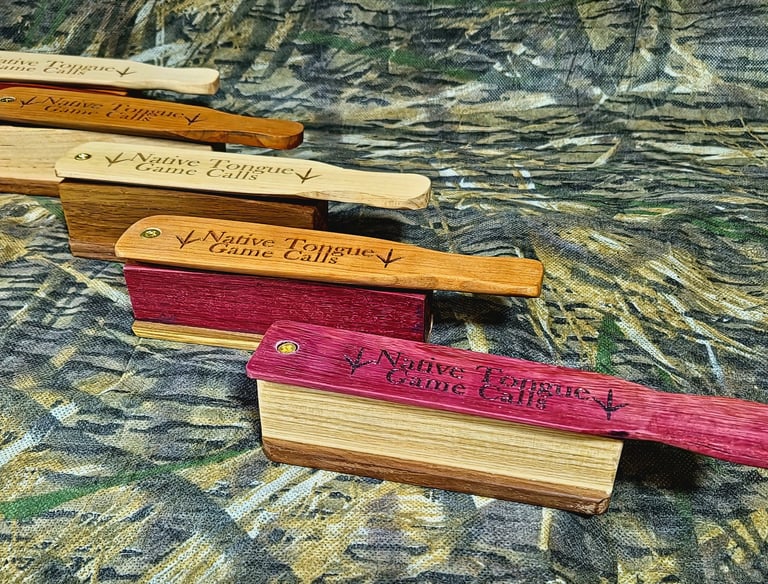 At Native Tongue Game Calls, we believe every turkey call should tell a story—of tradition, precision, and the pursuit of the perfect sound. Each of our turkey calls is handmade with care, using high-quality materials and a craftsman's attention to detail. No mass production. No shortcuts. Just honest work and reliable calls that help you bring game closer.